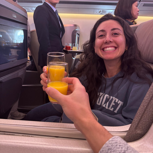 I had downloaded an app called "Timeshifter" to help us beat jet lag, and the app suggested we basically fall asleep immediately for the first 9 hours of the flight. We obviously did not do this, but we beat jet lag in our own way, opting to sleep a few hours on and off throughout the flight so as not to miss meal times and to still be tired at a normal bedtime when we landed.