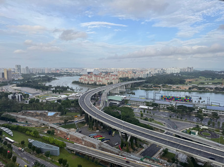 We used the Grab app, which is essentially Uber, to call a car to our hotel, but the car was too small for our big suitcases so only one fit in the trunk while the other rode shotgun for the drive to our hotel, the Ritz-Carlton Millenia Singapore.